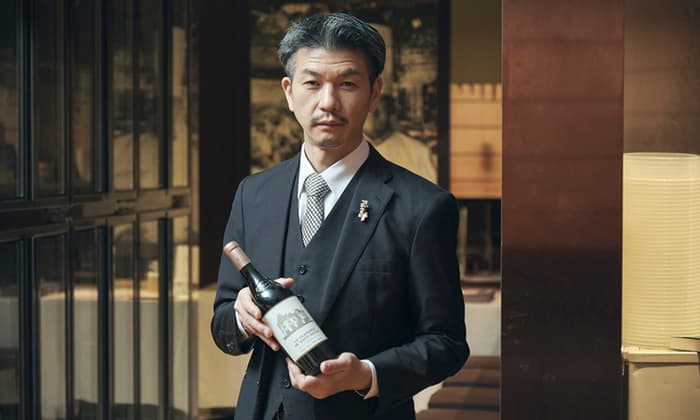 統括ソムリエでもある支配人の竹内仁が料理に合う最高のワインをセレクト