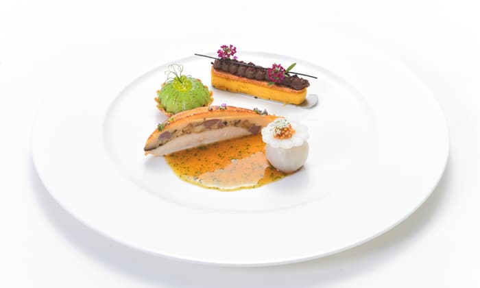 2022年1月に開催された国内代表選考会の課題食材は、青森県地鶏「青森シャモロックザ・プレミアム#6」と、鳥取県産原木しいたけ「とっとり115」。この2つを組み合わせた温製肉料理を提案した。