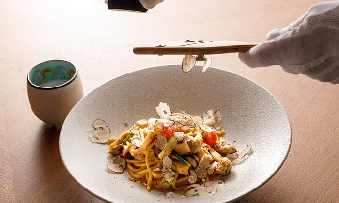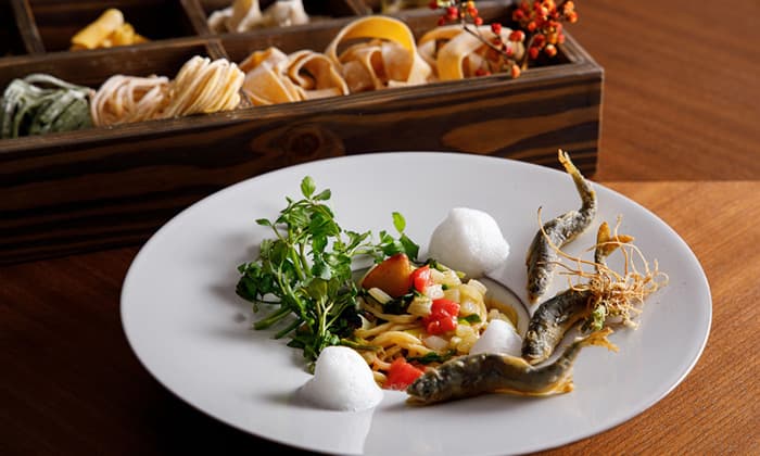 得意の生パスタには、信州ならではの蕎麦粉を練り込むなど、シェフ前田らしい新しい試みがあり、常時4〜6種類のパスタからお好みのものを選べるという。さらに、高原野菜や豊富な畜産物などの長野の食材、そしてローカルのワインなども念頭に置いた新しいレストラン体験が生まれるはずだ。