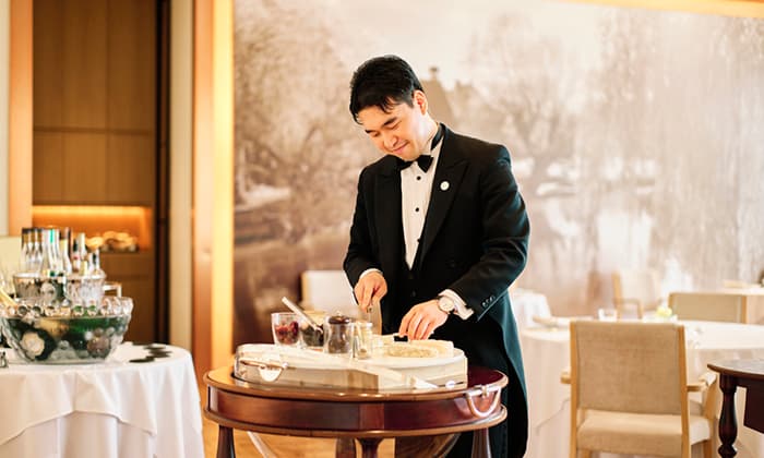 チーズサーブを行うサービススタッフ 斉藤圭吾