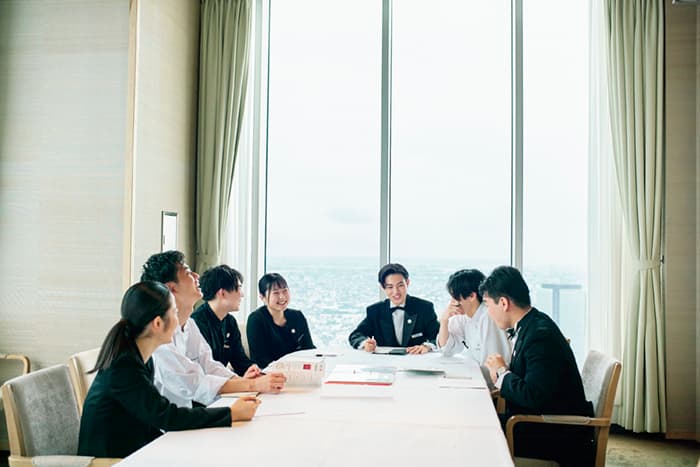 メニューを考えるのは主に調理スタッフやパティシエになるが、ここも入社1~2年目のスタッフたち。調理担当の野村拳太郎、瀬古口翔栄が加わる。