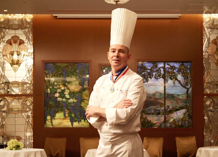 リヨンの名店「ポール・ボキューズ」がフランス料理の殿堂であることに異論を挟む人はいないだろう。故ポール・ボキューズ氏はこの店の、そしてフランス料理界の守り神のような大きな存在だった。そんな氏のもとで20年近く働き、2017年より総料理長を務めるのがジル・レナルト氏。2018年にボキューズ氏が他界したのち、この由緒ある店、料理、そしてボキューズ氏の哲学を引き継いでいるレナルト氏に、来日を機にインタビューした。